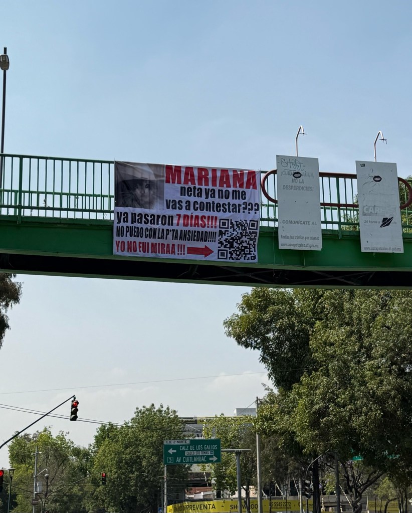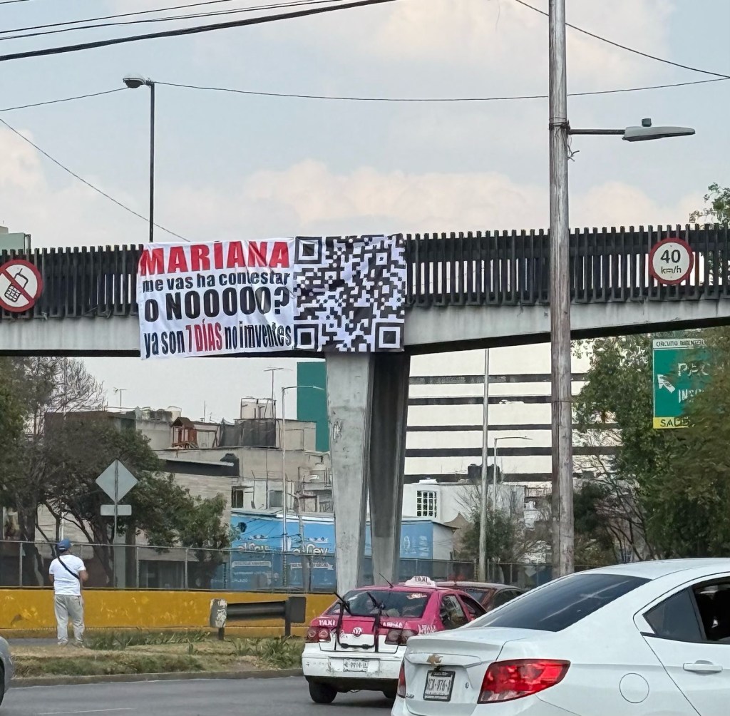 Este fin de semana, varios puntos de la Ciudad de México amanecieron con lonas que llevan un mensaje de disculpa dirigido a una tal “Mariana”, acompañado de un código QR que promete adjuntar pruebas. Sin embargo, al escanearlo, algunas de estas lonas redirigen a fotos de una pareja en lo que parece ser una fiesta, mientras que otras llevan directamente a “7 días”, la más reciente canción de Gabito Ballesteros y Tito Doble P.