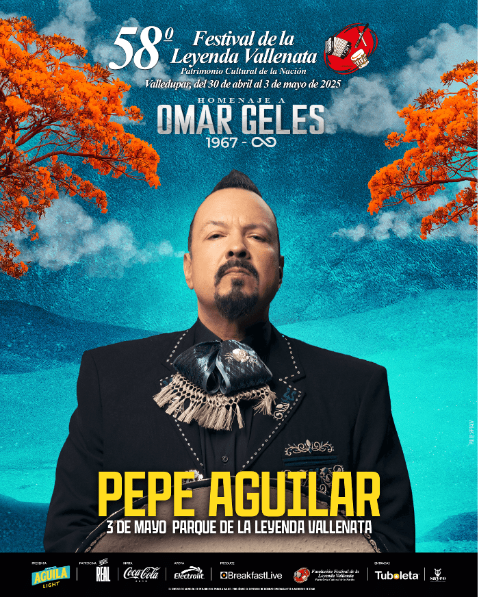 Valledupar, marzo 14 de 2025 – Pepe Aguilar, uno de los grandes íconos de la música ranchera mexicana, será parte del 58° Festival de la Leyenda Vallenata 2025, uno de los eventos más importantes del folclor vallenato. La cita será el 3 de mayo en el Parque de la Leyenda Vallenata ‘Consuelo Araujonoguera’ en Valledupar, Colombia, donde el cantante ofrecerá una noche inolvidable llena de la mejor música mexicana.