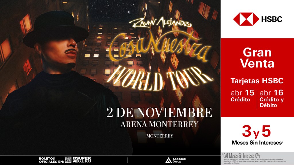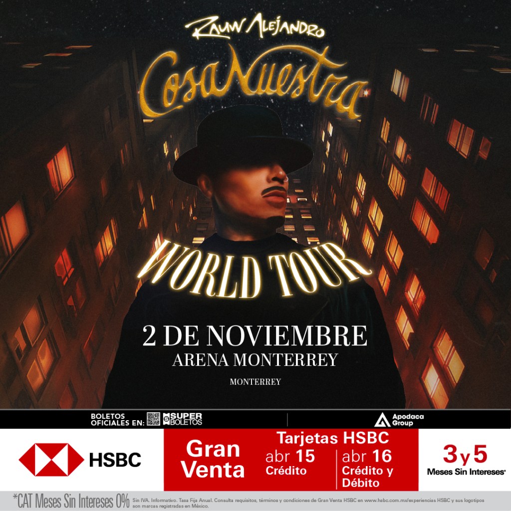 Monterrey, N.L., 14 de abril de 2025 – El superestrella puertorriqueño, Rauw Alejandro, ganador del Latin GRAMMY® y cuatro veces nominado al GRAMMY®, anuncia su esperada presentación en Monterrey como parte de su exitosa gira mundial Cosa Nuestra World Tour, producida por Live Nation.