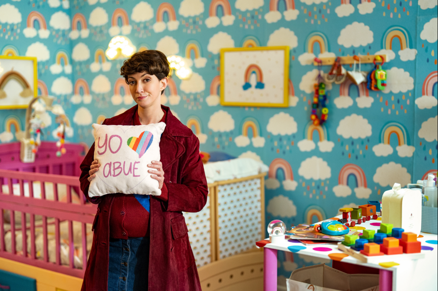 Lo que empieza como una broma inocente —una rayita dibujada con marcador en un test de embarazo— se transforma en una bola de nieve de engaños que lleva a Lucrecia a perder una barriga falsa en un baby shower, fingir un parto con un bebé prestado y lidiar con una menstruación inesperada frente a sus seguidores.