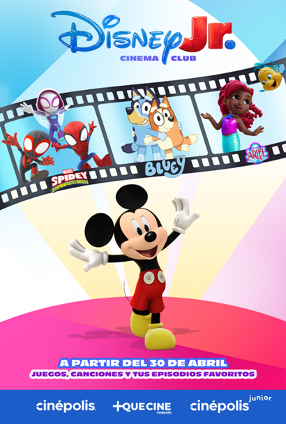 Ciudad de México, 10 de abril de 2025 – Este 30 de abril, Disney Junior y Cinépolis +QUE CINE unen fuerzas para presentar en exclusiva el Disney Junior Cinema Club, una propuesta cinematográfica interactiva, divertida y llena de magia, diseñada especialmente para niñas y niños de 3 a 8 años.