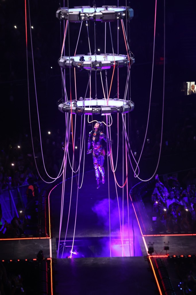 Después seguiría con el set dedicado al empoderamiento femenino con una estructura de una mujer cargando al mundo que puso a todos a gritar con sus coreografías dentro de la esfera.