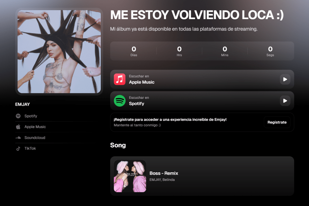 Impulsada por una comunidad que crece de forma orgánica y una propuesta artística cada vez más madura, EMJAY se consolida como una figura en expansión dentro del panorama musical actual. Su visión estética, su autenticidad y la fuerza emocional de su música la posicionan como una artista que no teme exponerse y explorar nuevas dimensiones creativas.