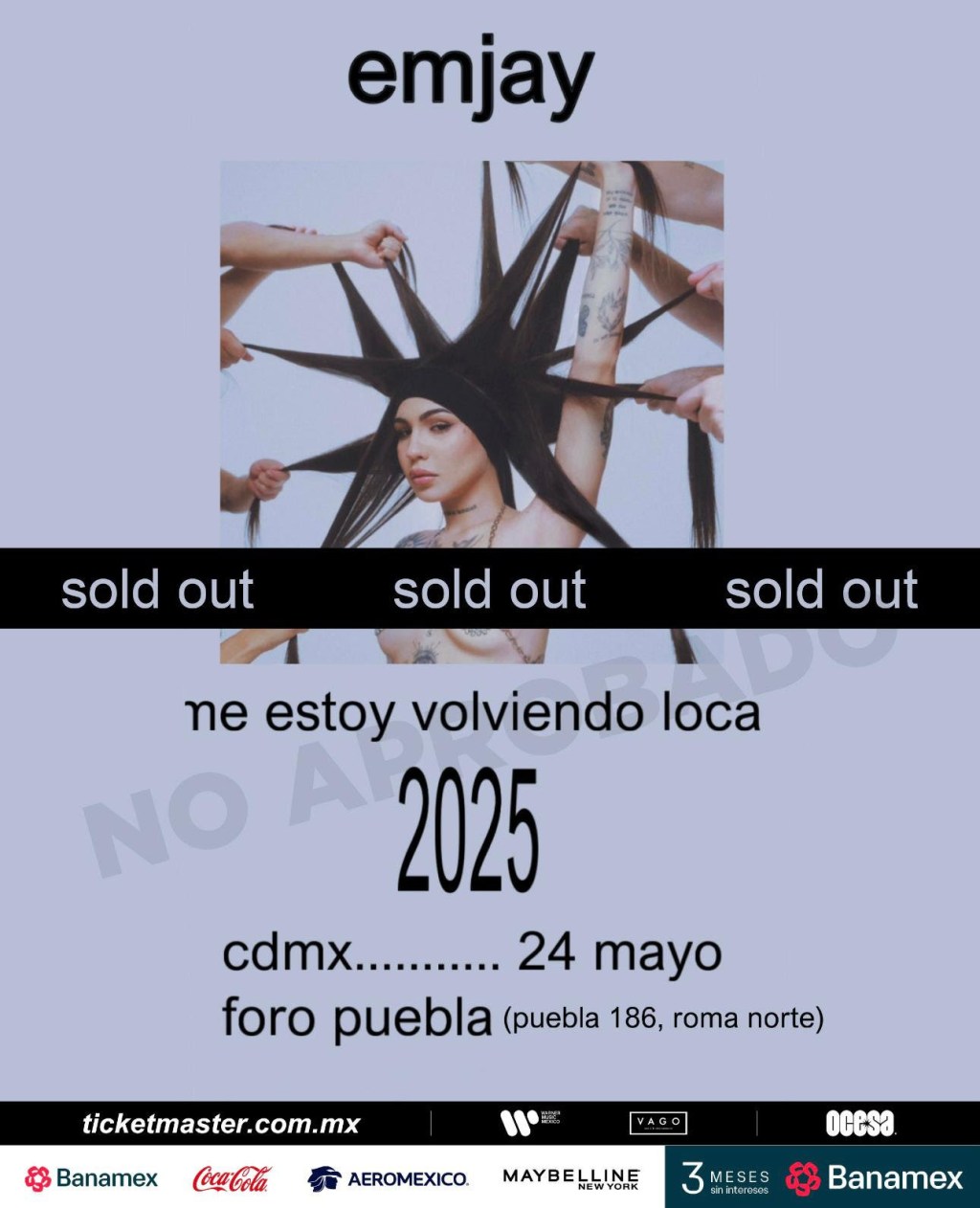 Ciudad de México, 12 de mayo de 2025 — EMJAY, una de las voces con mayor crecimiento en la escena del pop alternativo mexicano, ha hecho sold out para su esperado show en el Foro Puebla de la Ciudad de México, que se llevará a cabo el próximo 24 de mayo. Este rotundo éxito confirma la fuerza de su proyecto artístico y la conexión genuina que ha cultivado con su audiencia.