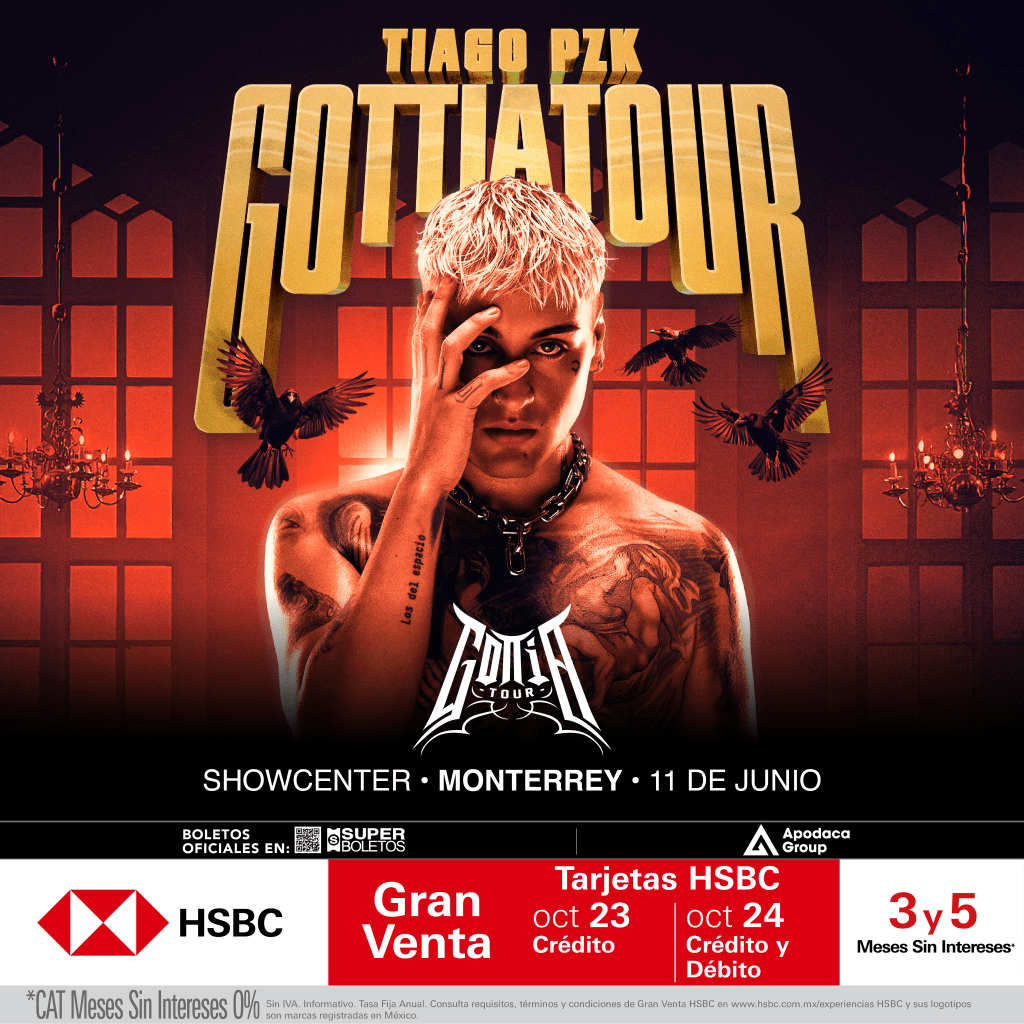 El fenómeno de la música urbana argentina, Tiago PZK, se presentará en Monterrey el próximo miércoles 11 de junio a las 9:00 p.m. en el Showcenter Complex, ubicado en San Pedro Garza García. Este evento forma parte de su gira internacional “Gottia Tour”, que ha cautivado a miles de fanáticos en América Latina y España