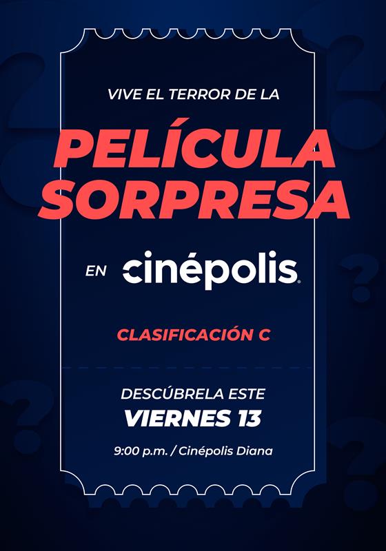 Si eres amante del cine de terror, prepara tus nervios: Película Sorpresa de Cinépolis regresa con una función especial este viernes 13 de junio de 2025 en Cinépolis Diana, ubicada en la Ciudad de México. La función será única, con boletos disponibles a precio de función tradicional y una advertencia clara: la película será clasificación C.