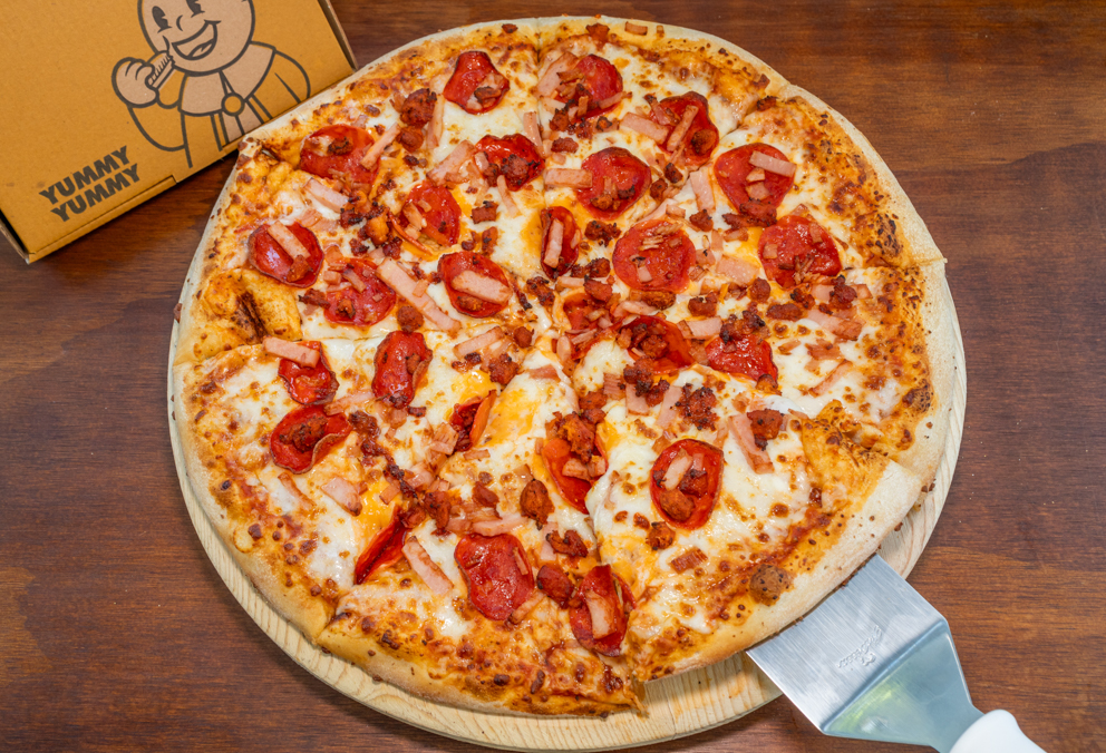Pizzas clásicas y especiales como la Taquera o la Aloha Fire Chicken, además de la opción de personalizar tu creación. Calificación Rappi: 4.7 estrellas.