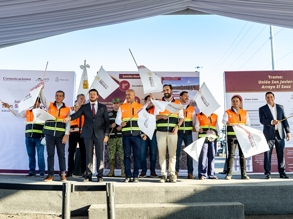 “Hoy damos el banderazo y me da mucho gusto que hayamos iniciado con el tramo que va de Saltillo a Monterrey, y de Monterrey a Nuevo Laredo. Este proyecto traerá miles de empleos, gran derrama económica y una movilidad histórica para Nuevo León”.