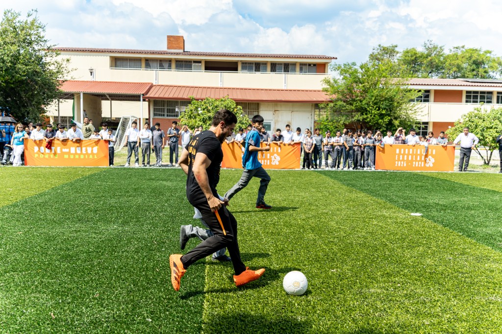 Durante el evento, que incluyó una “cascarita” con estudiantes, el mandatario estatal se reunió con Laurent Duvillier, director de Comunicación de UNICEF México, en el marco del convenio con este organismo internacional.