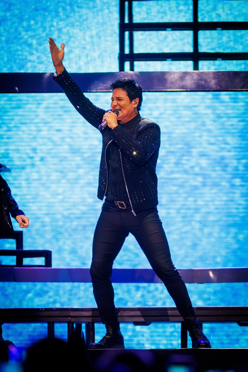 El momento llegó, y con una entrada espectacular, Chayanne salió al escenario provocando una ola de gritos que estremeció el recinto. Vestido con un look elegante y moderno, arrancó el show con un despliegue de energía que puso a todos de pie desde los primeros minutos.