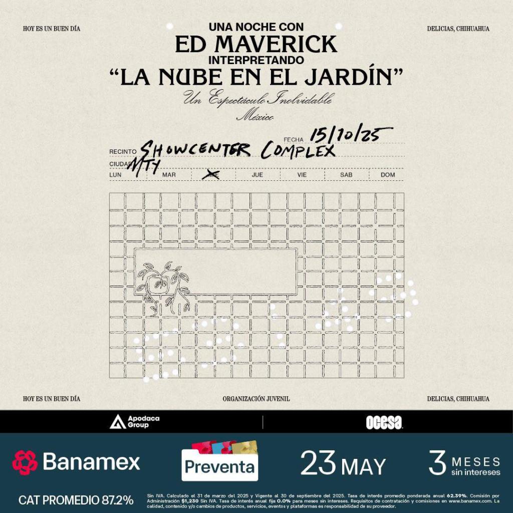 El cantautor chihuahuense Ed Maverick regresa a Monterrey con su espectáculo “La Nube en el Jardín”, una presentación íntima y profundamente emocional que promete ser una de las noches más esperadas del año.