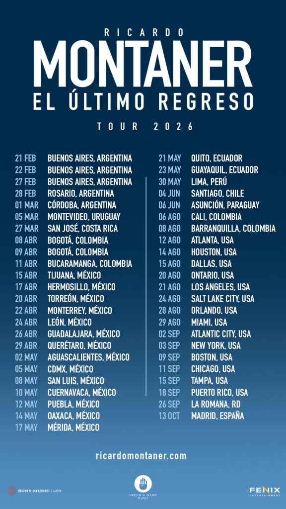 El pasado 23 de febrero de 2026, Ricardo Montaner volvió a los escenarios con dos shows completamente agotados en el Movistar Arena, marcando el arranque oficial de su gira mundial “El Último Regreso Tour 2026”, producida por Fenix Entertainment.