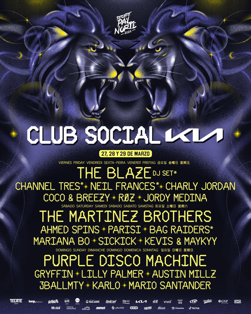 Con una producción visual envolvente, beats constantes y una energía que se siente desde el primer minuto, el Club Social KIA promete ser uno de los puntos más vibrantes del festival, ideal para quienes buscan bailar sin parar en medio del ambiente único de Tecate Pa’l Norte.